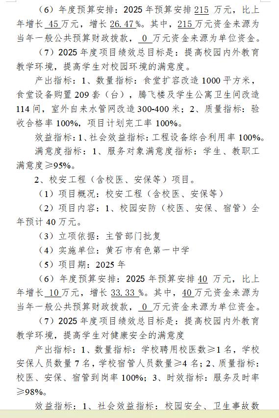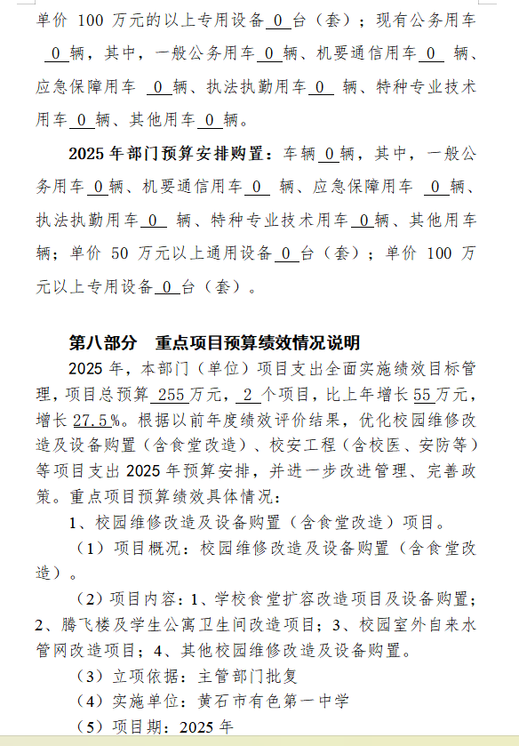 2025年度黄石市有色第一中学部门预算公开